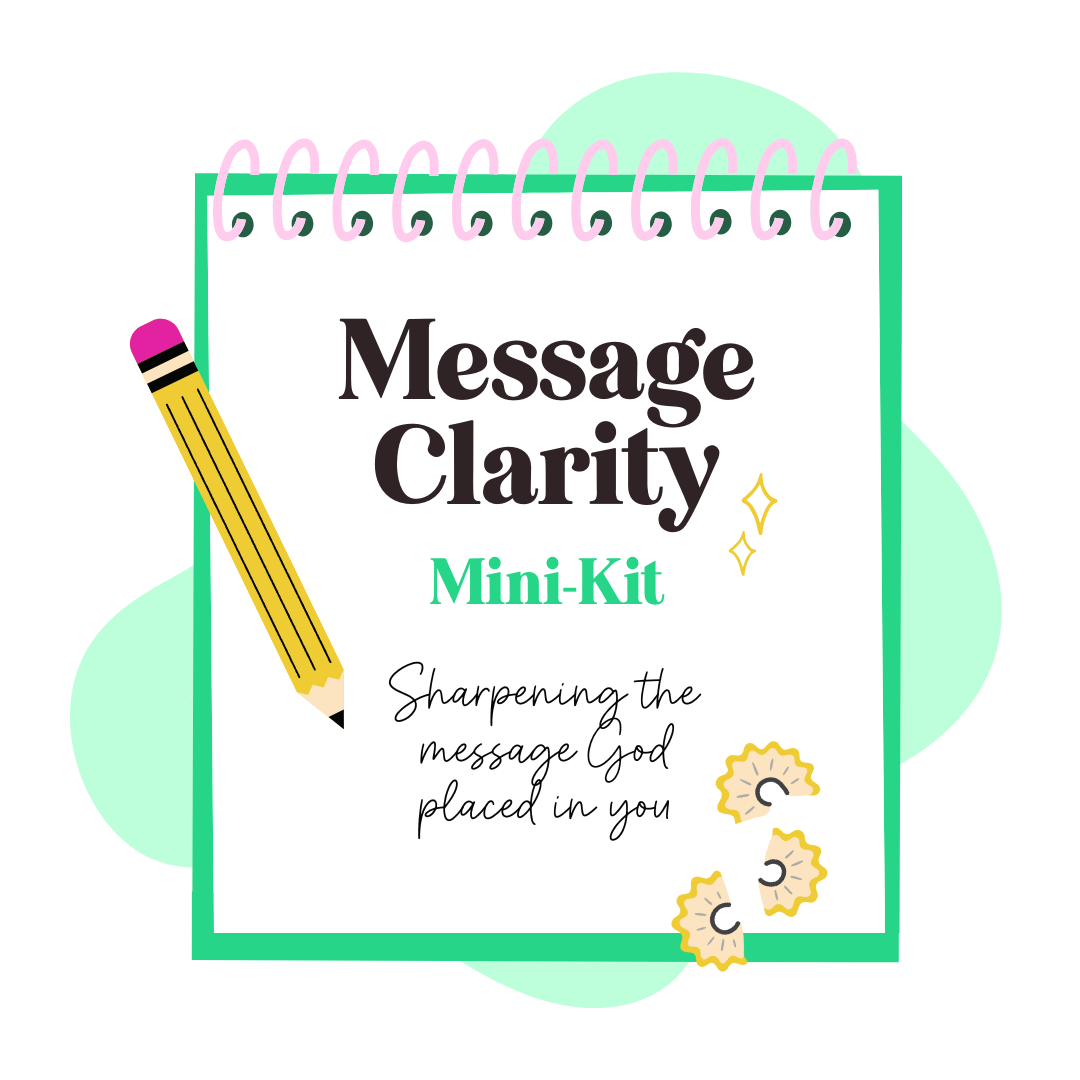 The Message Clarity Mini-Kit walks you step-by-step through identifying your audience, choosing a problem with teeth, and crafting a topic strong enough to support a book, a talk, a retreat, or a course.